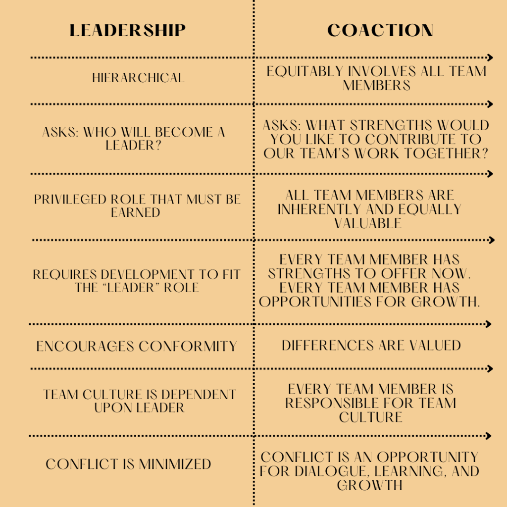 Coaction encourages us to approach our team with an asset-based mindset that can enable us to maximize our collective capacity as we work toward shared goals. Inspired by this concept first proposed by Dr. Karen Suyemoto and Dr. Mary Ballou in 2007, I have dedicated my career to developing an interdisciplinary, integrated framework, the coactive process, that can be applied in any team setting. I want to help you identify strategies to cultivate a coactive team.